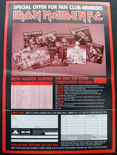 Iron Maiden Flyer Fan Club Bms Merchandise Sheet First Ten Years 1990 Ebay